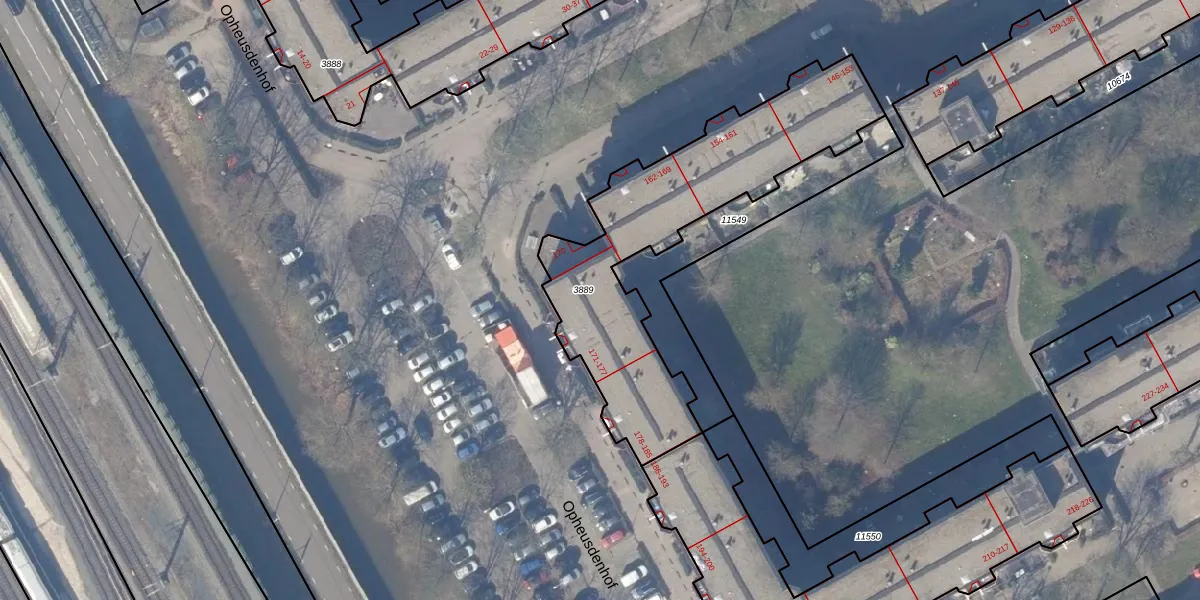 Opheusdenhof 173 is gelegen op kadastraal perceel WPK02L3889. Deze kadastrale aanduiding is uniek en wordt gebruikt door het Kadaster om eigendomsrechten en andere zakelijke rechten vast te leggen. Het perceel maakt onderdeel uit van de kadastrale gemeente Weesperkarspel.
