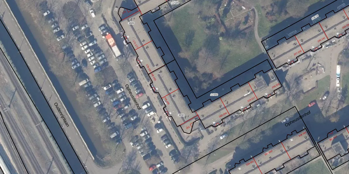 Het perceel waarop Opheusdenhof 193 staat heeft een oppervlakte van 1145 m². Dit is een zeer groot perceel. De perceeloppervlakte wordt geregistreerd door het Kadaster. Gedetailleerde informatie over de maten van dit perceel kunt u vinden in het rapport Kadastrale kaart met maatvoering van Opheusdenhof 193.