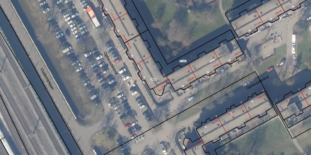 Het perceel waarop Opheusdenhof 199 staat heeft een oppervlakte van 1145 m². Dit is een zeer groot perceel. De perceeloppervlakte wordt geregistreerd door het Kadaster. Gedetailleerde informatie over de maten van dit perceel kunt u vinden in het rapport Kadastrale kaart met maatvoering van Opheusdenhof 199.