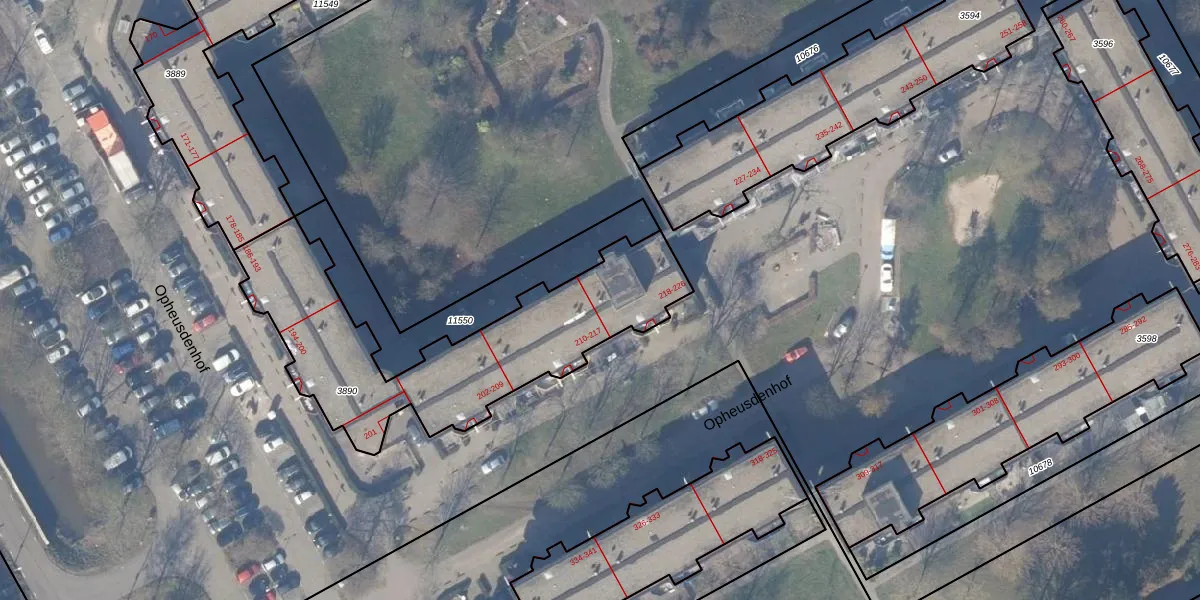 Opheusdenhof 220 is gelegen op kadastraal perceel WPK02L3890. Deze kadastrale aanduiding is uniek en wordt gebruikt door het Kadaster om eigendomsrechten en andere zakelijke rechten vast te leggen. Het perceel maakt onderdeel uit van de kadastrale gemeente Weesperkarspel.