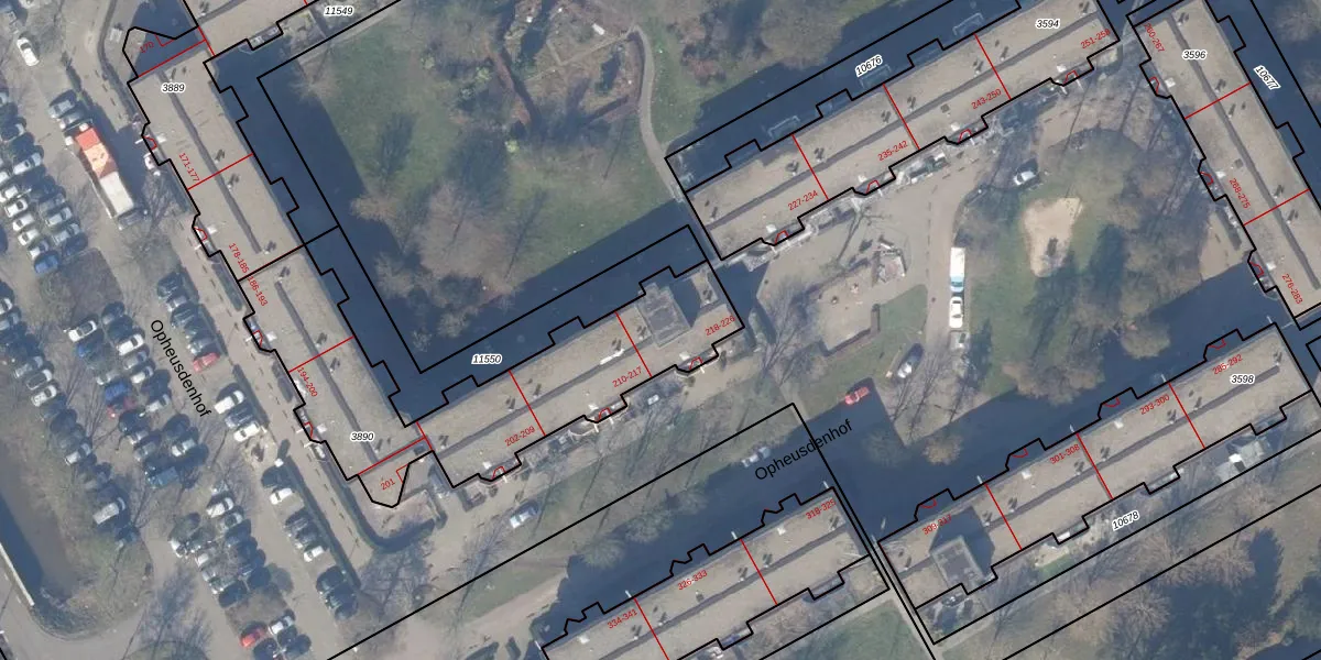 Het perceel waarop Opheusdenhof 222 staat heeft een oppervlakte van 1145 m². Dit is een zeer groot perceel. De perceeloppervlakte wordt geregistreerd door het Kadaster. Gedetailleerde informatie over de maten van dit perceel kunt u vinden in het rapport Kadastrale kaart met maatvoering van Opheusdenhof 222.