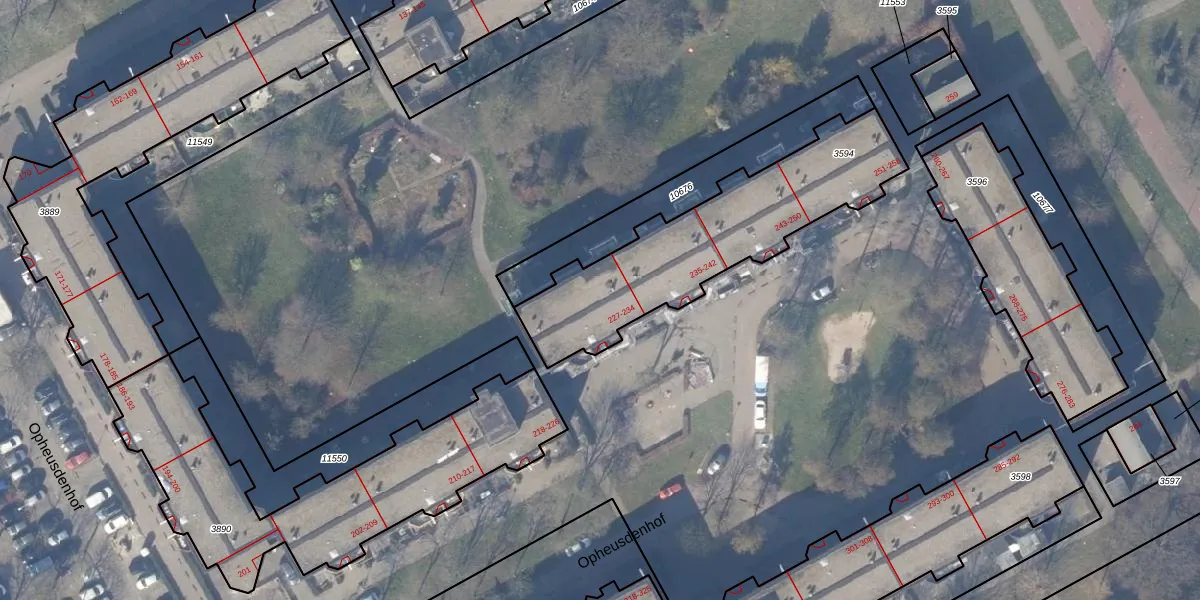 Het perceel waarop Opheusdenhof 231 staat heeft een oppervlakte van 884 m². Dit is een groot perceel. De perceeloppervlakte wordt geregistreerd door het Kadaster. Gedetailleerde informatie over de maten van dit perceel kunt u vinden in het rapport Kadastrale kaart met maatvoering van Opheusdenhof 231.