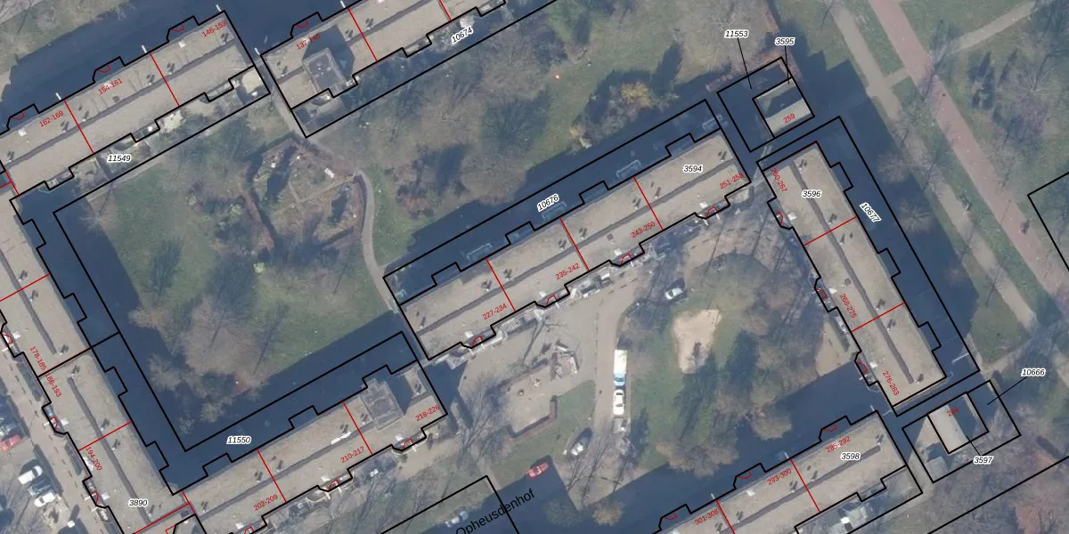 Opheusdenhof 238 is gelegen op kadastraal perceel WPK02L3594. Deze kadastrale aanduiding is uniek en wordt gebruikt door het Kadaster om eigendomsrechten en andere zakelijke rechten vast te leggen. Het perceel maakt onderdeel uit van de kadastrale gemeente Weesperkarspel.