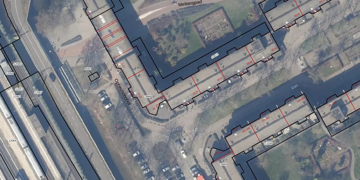 Het perceel waarop Opheusdenhof 27 staat heeft een oppervlakte van 1690 m². Dit is een zeer groot perceel. De perceeloppervlakte wordt geregistreerd door het Kadaster. Gedetailleerde informatie over de maten van dit perceel kunt u vinden in het rapport Kadastrale kaart met maatvoering van Opheusdenhof 27.