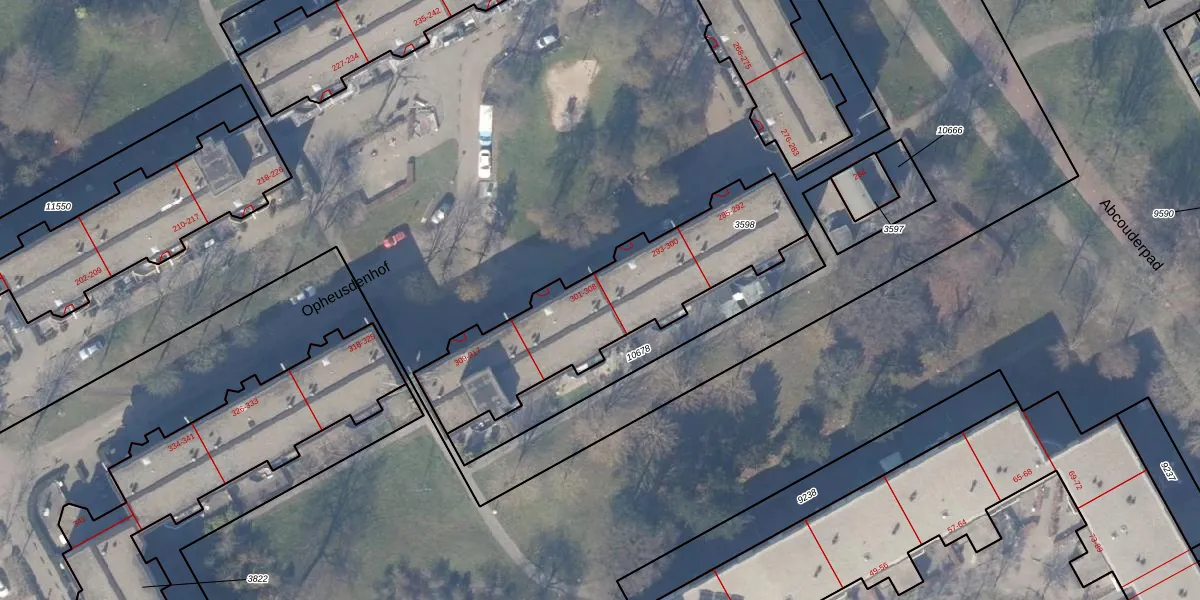 Het perceel waarop Opheusdenhof 303 staat heeft een oppervlakte van 883 m². Dit is een groot perceel. De perceeloppervlakte wordt geregistreerd door het Kadaster. Gedetailleerde informatie over de maten van dit perceel kunt u vinden in het rapport Kadastrale kaart met maatvoering van Opheusdenhof 303.