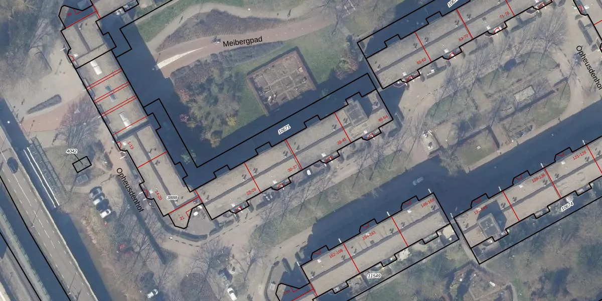 Het perceel waarop Opheusdenhof 38 staat heeft een oppervlakte van 1690 m². Dit is een zeer groot perceel. De perceeloppervlakte wordt geregistreerd door het Kadaster. Gedetailleerde informatie over de maten van dit perceel kunt u vinden in het rapport Kadastrale kaart met maatvoering van Opheusdenhof 38.