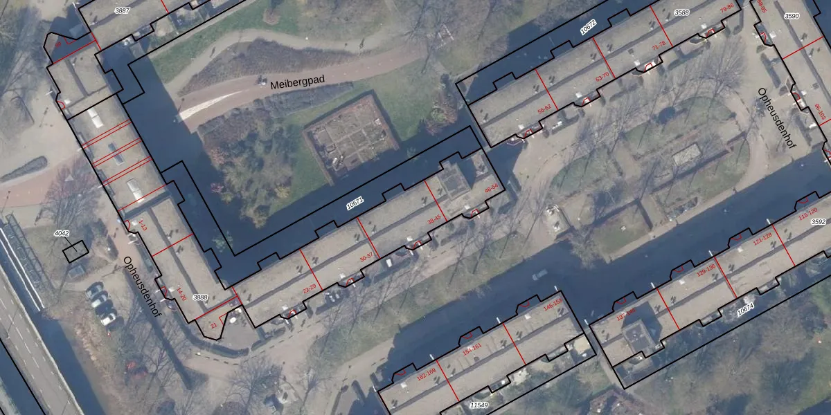 Het perceel waarop Opheusdenhof 45 staat heeft een oppervlakte van 1690 m². Dit is een zeer groot perceel. De perceeloppervlakte wordt geregistreerd door het Kadaster. Gedetailleerde informatie over de maten van dit perceel kunt u vinden in het rapport Kadastrale kaart met maatvoering van Opheusdenhof 45.