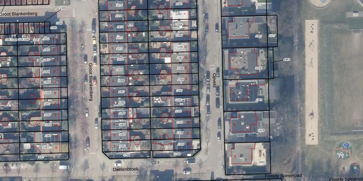 Het perceel waarop Opveld 22 staat heeft een oppervlakte van 162 m². Dit is een middelgroot perceel. De perceeloppervlakte wordt geregistreerd door het Kadaster. Gedetailleerde informatie over de maten van dit perceel kunt u vinden in het rapport Kadastrale kaart met maatvoering van Opveld 22.