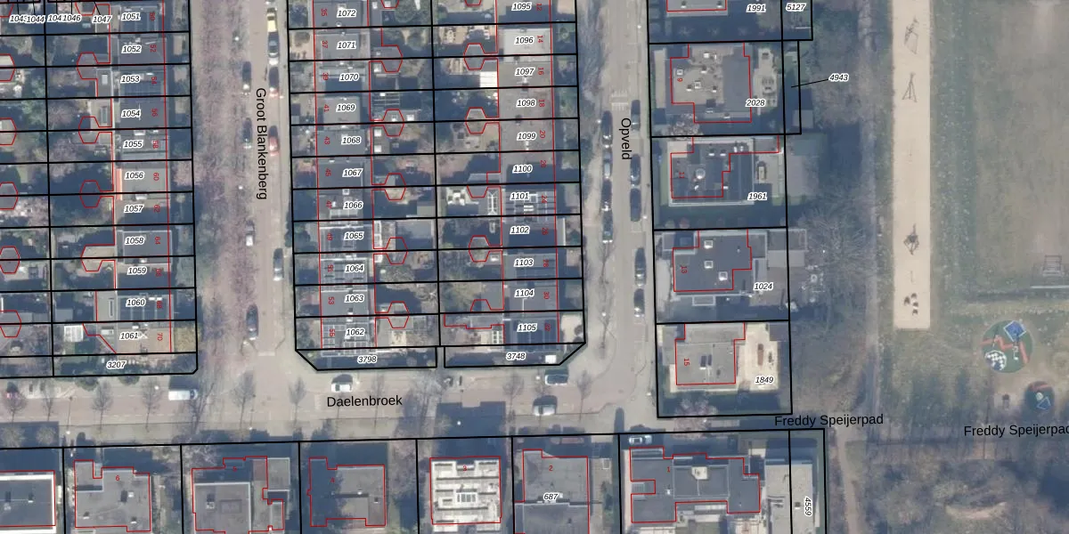 Gebruik de zoekbalk of klik op een perceel voor informatie over de adressen binnen dit perceel.