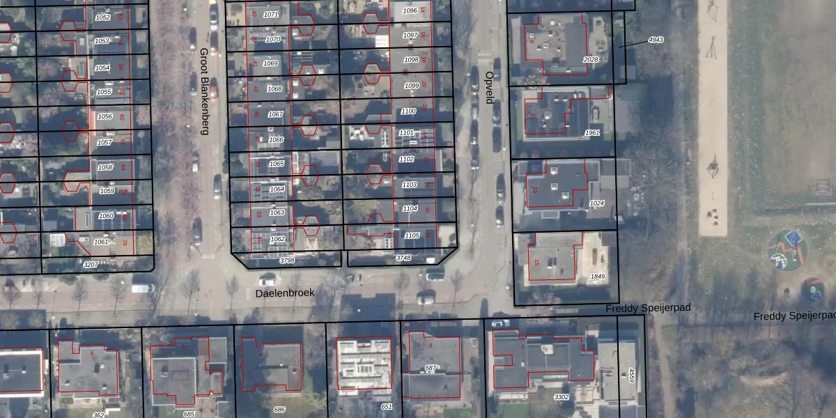 Het perceel waarop Opveld 30 staat heeft een oppervlakte van 162 m². Dit is een middelgroot perceel. De perceeloppervlakte wordt geregistreerd door het Kadaster. Gedetailleerde informatie over de maten van dit perceel kunt u vinden in het rapport Kadastrale kaart met maatvoering van Opveld 30.