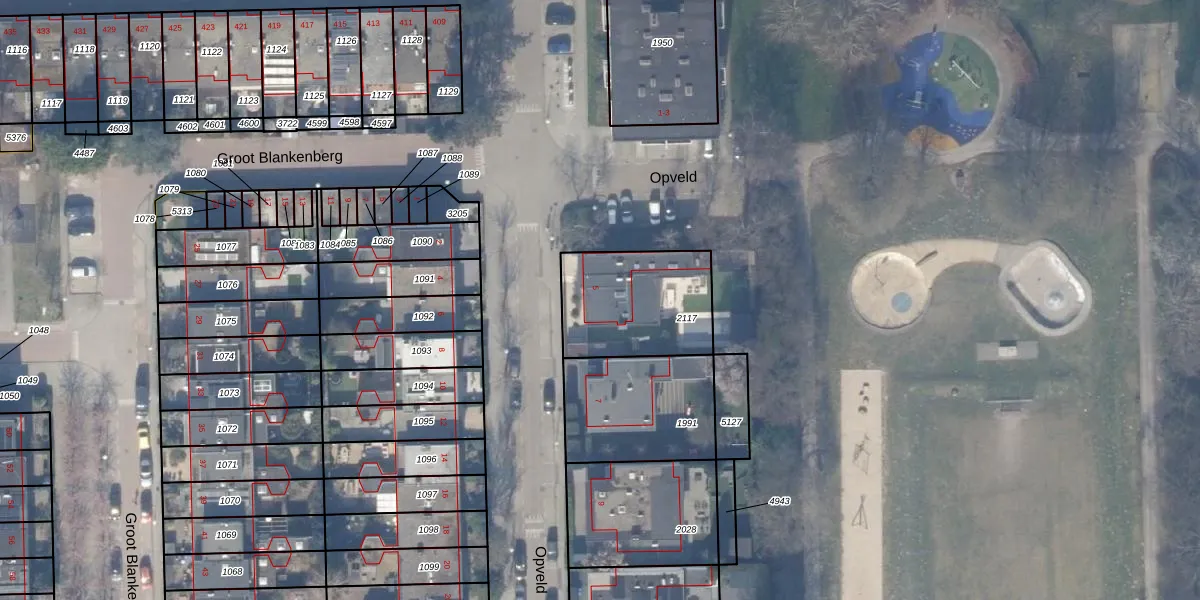 Het perceel waarop Opveld 5 staat heeft een oppervlakte van 438 m². Dit is een groot perceel. De perceeloppervlakte wordt geregistreerd door het Kadaster. Gedetailleerde informatie over de maten van dit perceel kunt u vinden in het rapport Kadastrale kaart met maatvoering van Opveld 5.