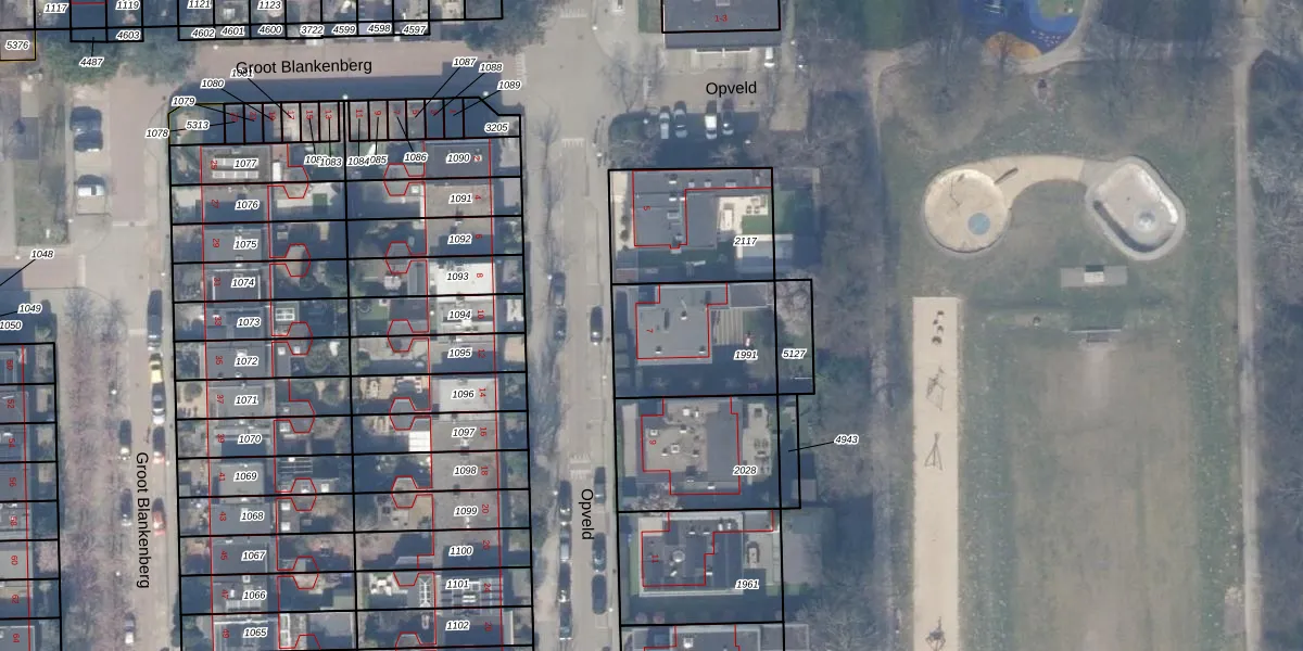 Het perceel waarop Opveld 7 staat heeft een oppervlakte van 438 m². Dit is een groot perceel. De perceeloppervlakte wordt geregistreerd door het Kadaster. Gedetailleerde informatie over de maten van dit perceel kunt u vinden in het rapport Kadastrale kaart met maatvoering van Opveld 7.