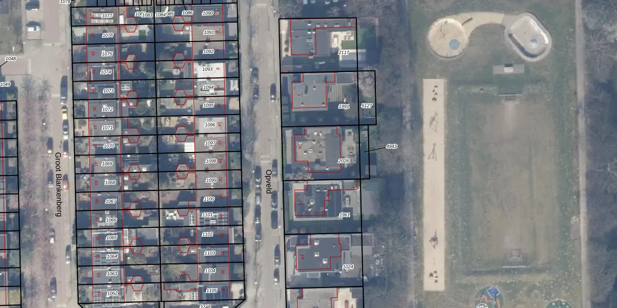Het perceel waarop Opveld 9 staat heeft een oppervlakte van 438 m². Dit is een groot perceel. De perceeloppervlakte wordt geregistreerd door het Kadaster. Gedetailleerde informatie over de maten van dit perceel kunt u vinden in het rapport Kadastrale kaart met maatvoering van Opveld 9.