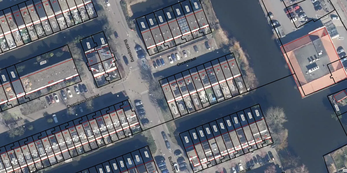 Gebruik de zoekbalk of klik op een perceel voor informatie over de adressen binnen dit perceel.