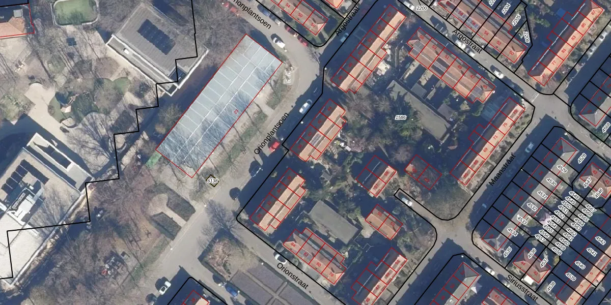 Het perceel waarop Orionplantsoen 38 staat heeft een oppervlakte van 5317 m². Dit is een zeer groot perceel. De perceeloppervlakte wordt geregistreerd door het Kadaster. Gedetailleerde informatie over de maten van dit perceel kunt u vinden in het rapport Kadastrale kaart met maatvoering van Orionplantsoen 38.