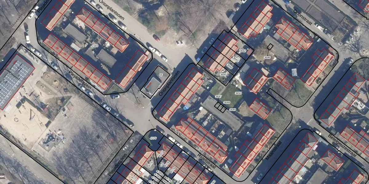 Het perceel waarop Orionplantsoen 8 staat heeft een oppervlakte van 4733 m². Dit is een zeer groot perceel. De perceeloppervlakte wordt geregistreerd door het Kadaster. Gedetailleerde informatie over de maten van dit perceel kunt u vinden in het rapport Kadastrale kaart met maatvoering van Orionplantsoen 8.