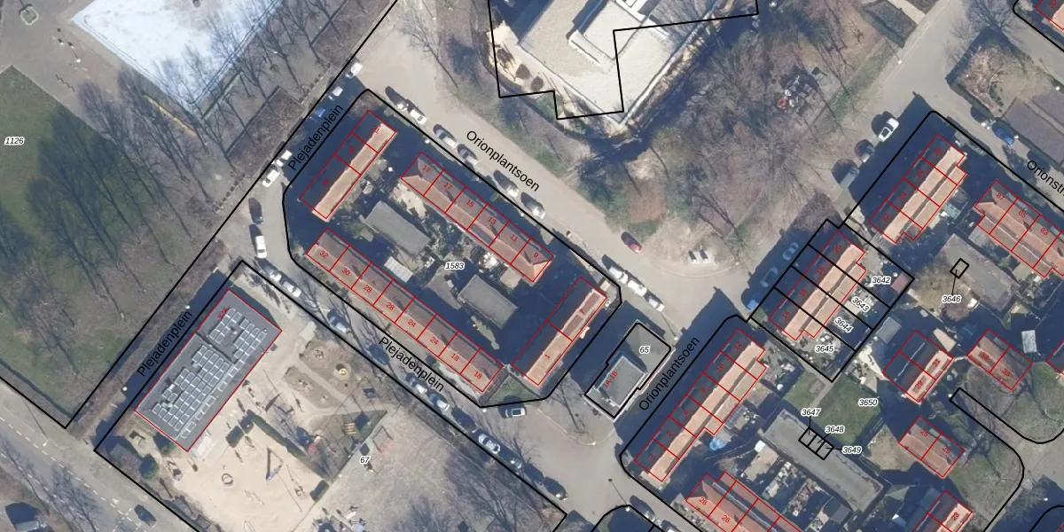 Het perceel waarop Orionplantsoen 9 staat heeft een oppervlakte van 2066 m². Dit is een zeer groot perceel. De perceeloppervlakte wordt geregistreerd door het Kadaster. Gedetailleerde informatie over de maten van dit perceel kunt u vinden in het rapport Kadastrale kaart met maatvoering van Orionplantsoen 9.