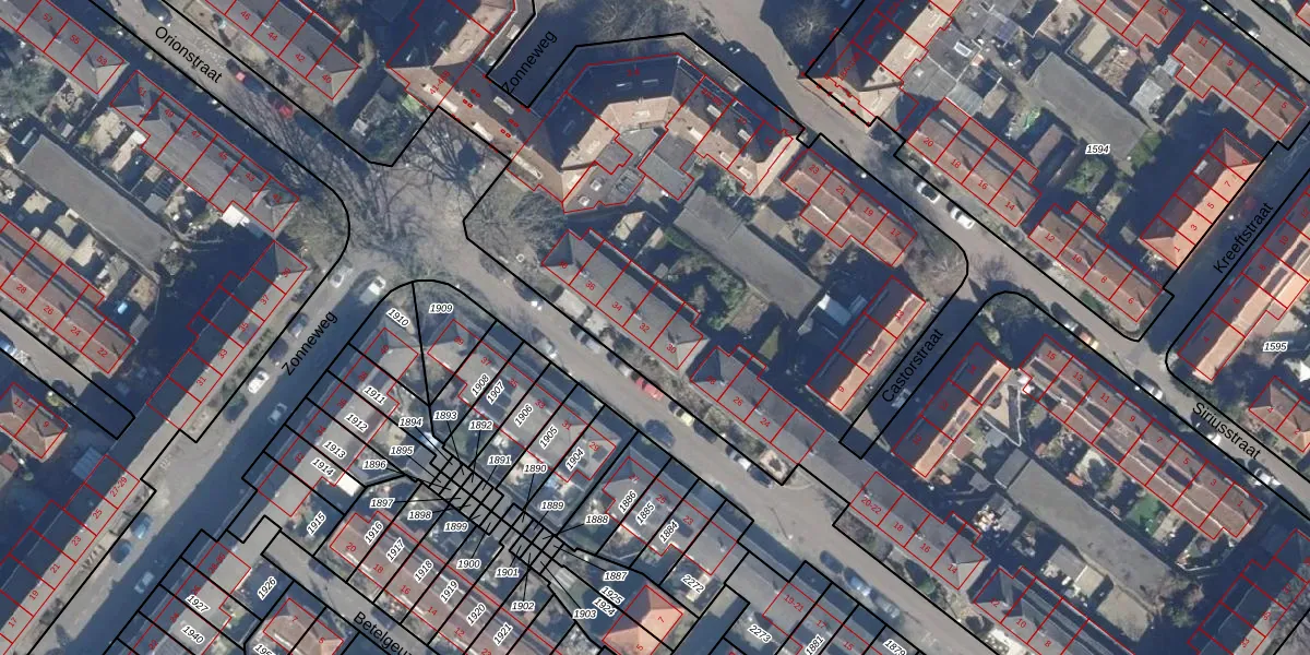 Het perceel waarop Orionstraat 32 staat heeft een oppervlakte van 1,2 ha. Dit is een zeer groot perceel. De perceeloppervlakte wordt geregistreerd door het Kadaster. Gedetailleerde informatie over de maten van dit perceel kunt u vinden in het rapport Kadastrale kaart met maatvoering van Orionstraat 32.