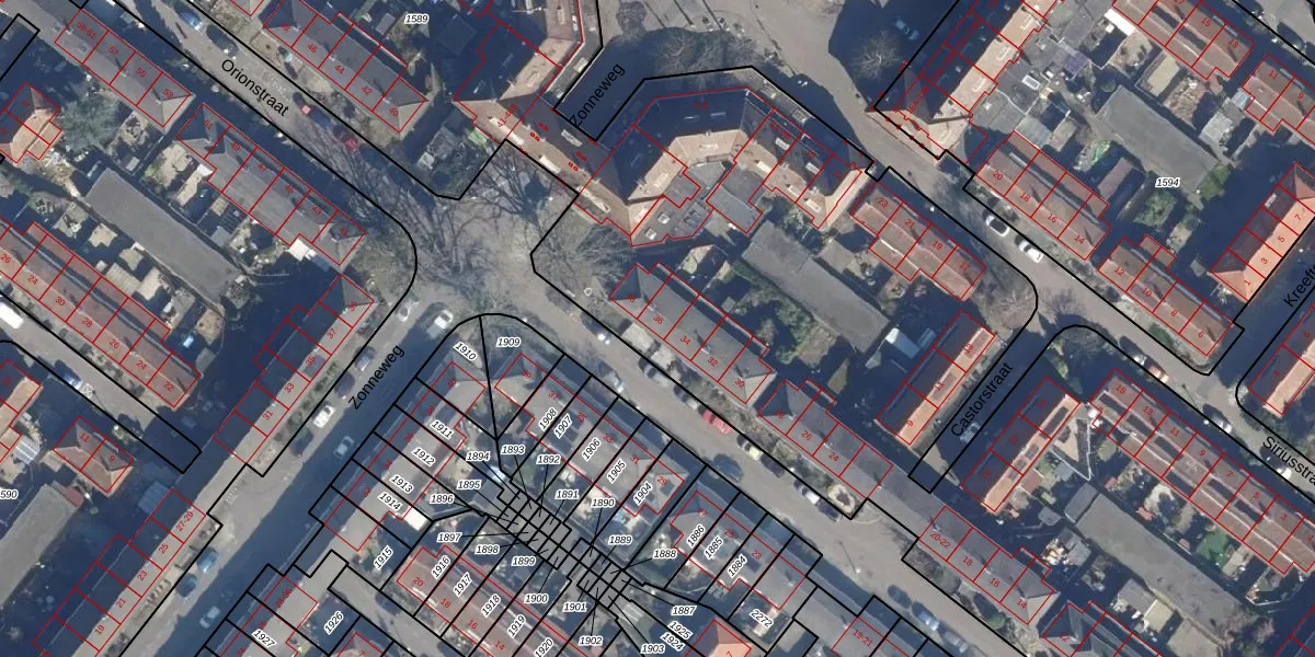 Het perceel waarop Orionstraat 36 staat heeft een oppervlakte van 1,2 ha. Dit is een zeer groot perceel. De perceeloppervlakte wordt geregistreerd door het Kadaster. Gedetailleerde informatie over de maten van dit perceel kunt u vinden in het rapport Kadastrale kaart met maatvoering van Orionstraat 36.