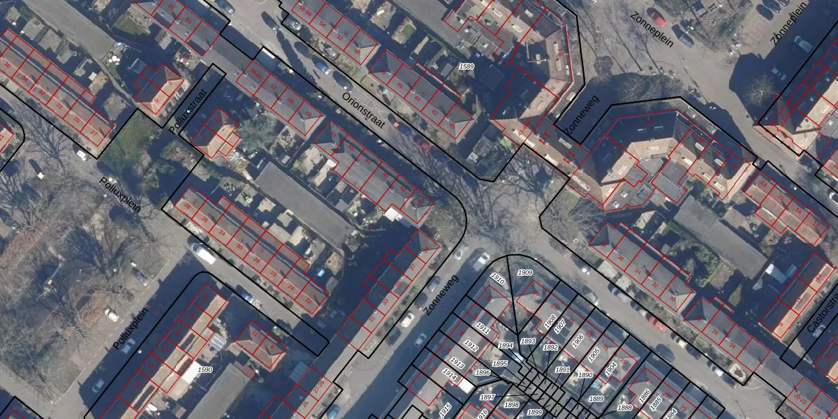 Het perceel waarop Orionstraat 41 staat heeft een oppervlakte van 1,4 ha. Dit is een zeer groot perceel. De perceeloppervlakte wordt geregistreerd door het Kadaster. Gedetailleerde informatie over de maten van dit perceel kunt u vinden in het rapport Kadastrale kaart met maatvoering van Orionstraat 41.