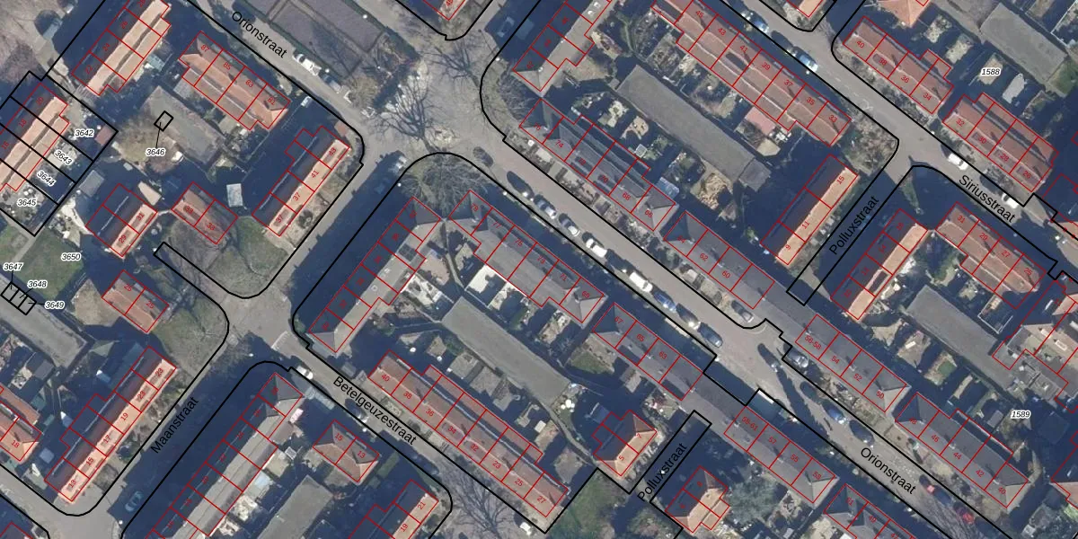 Het perceel waarop Orionstraat 73 staat heeft een oppervlakte van 1,4 ha. Dit is een zeer groot perceel. De perceeloppervlakte wordt geregistreerd door het Kadaster. Gedetailleerde informatie over de maten van dit perceel kunt u vinden in het rapport Kadastrale kaart met maatvoering van Orionstraat 73.