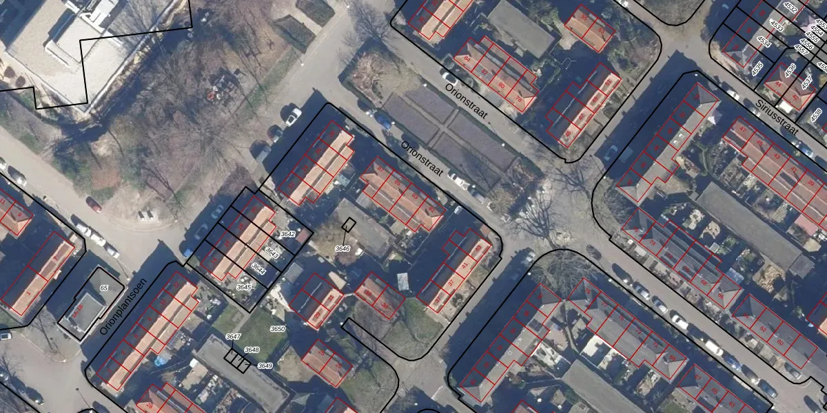 Het perceel waarop Orionstraat 83 staat heeft een oppervlakte van 4733 m². Dit is een zeer groot perceel. De perceeloppervlakte wordt geregistreerd door het Kadaster. Gedetailleerde informatie over de maten van dit perceel kunt u vinden in het rapport Kadastrale kaart met maatvoering van Orionstraat 83.