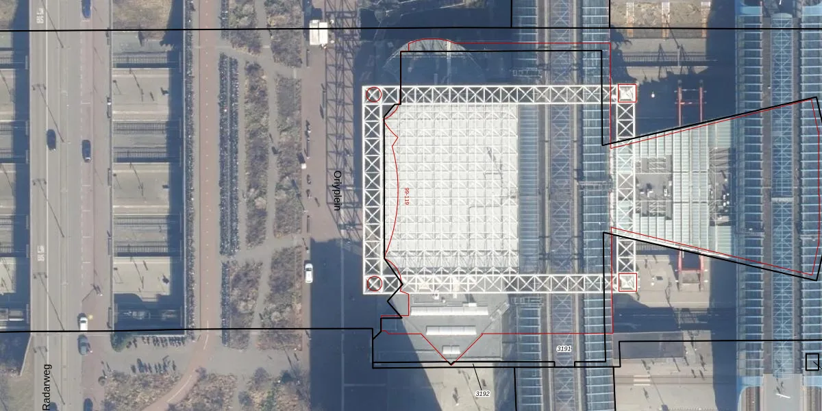 Het perceel waarop Orlyplein 117 staat heeft een oppervlakte van 5740 m². Dit is een zeer groot perceel. De perceeloppervlakte wordt geregistreerd door het Kadaster. Gedetailleerde informatie over de maten van dit perceel kunt u vinden in het rapport Kadastrale kaart met maatvoering van Orlyplein 117.