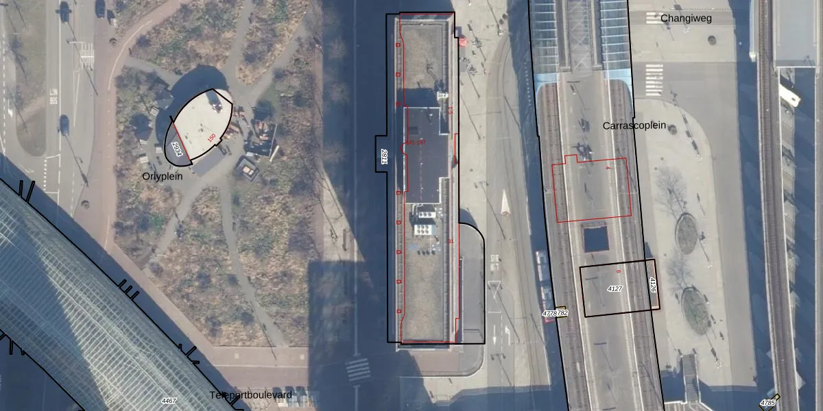 Het perceel waarop Orlyplein 147 staat heeft een oppervlakte van 1600 m². Dit is een zeer groot perceel. De perceeloppervlakte wordt geregistreerd door het Kadaster. Gedetailleerde informatie over de maten van dit perceel kunt u vinden in het rapport Kadastrale kaart met maatvoering van Orlyplein 147.