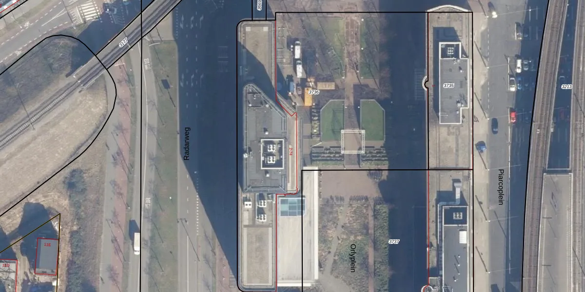 Het perceel waarop Orlyplein 26 staat heeft een oppervlakte van 4540 m². Dit is een zeer groot perceel. De perceeloppervlakte wordt geregistreerd door het Kadaster. Gedetailleerde informatie over de maten van dit perceel kunt u vinden in het rapport Kadastrale kaart met maatvoering van Orlyplein 26.