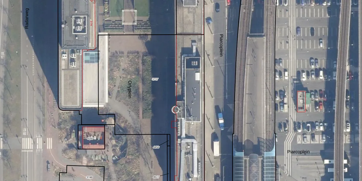 Het perceel waarop Orlyplein 81 staat heeft een oppervlakte van 3825 m². Dit is een zeer groot perceel. De perceeloppervlakte wordt geregistreerd door het Kadaster. Gedetailleerde informatie over de maten van dit perceel kunt u vinden in het rapport Kadastrale kaart met maatvoering van Orlyplein 81.