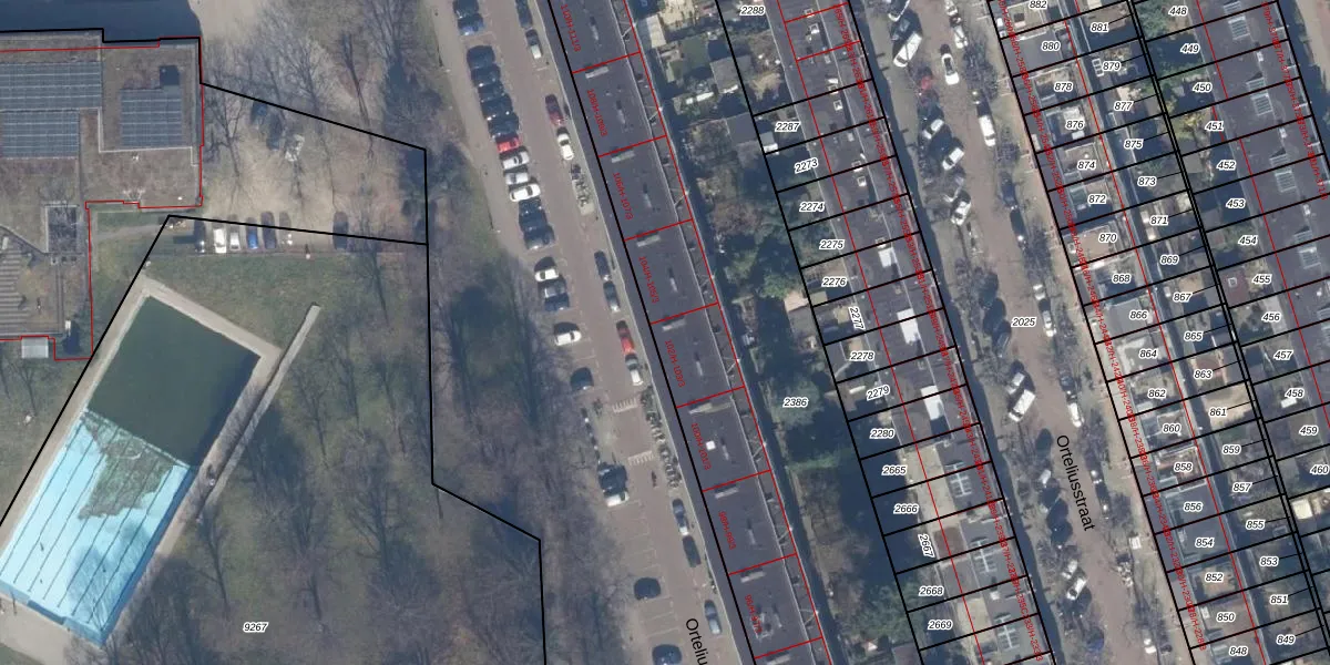 Het perceel waarop Orteliuskade 103-H staat heeft een oppervlakte van 5217 m². Dit is een zeer groot perceel. De perceeloppervlakte wordt geregistreerd door het Kadaster. Gedetailleerde informatie over de maten van dit perceel kunt u vinden in het rapport Kadastrale kaart met maatvoering van Orteliuskade 103-H.