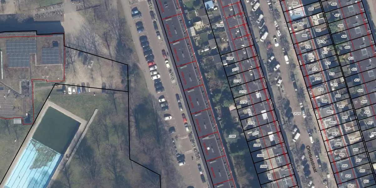 Het perceel waarop Orteliuskade 105-2 staat heeft een oppervlakte van 5217 m². Dit is een zeer groot perceel. De perceeloppervlakte wordt geregistreerd door het Kadaster. Gedetailleerde informatie over de maten van dit perceel kunt u vinden in het rapport Kadastrale kaart met maatvoering van Orteliuskade 105-2.