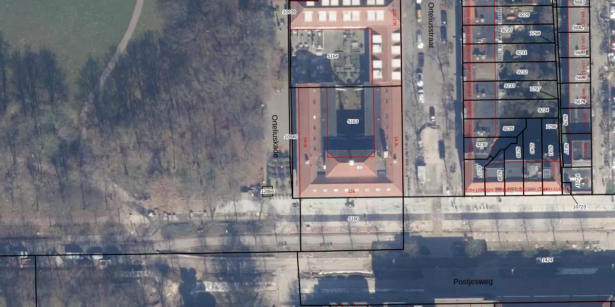 Het perceel waarop Orteliuskade 4-F staat heeft een oppervlakte van 1291 m². Dit is een zeer groot perceel. De perceeloppervlakte wordt geregistreerd door het Kadaster. Gedetailleerde informatie over de maten van dit perceel kunt u vinden in het rapport Kadastrale kaart met maatvoering van Orteliuskade 4-F.