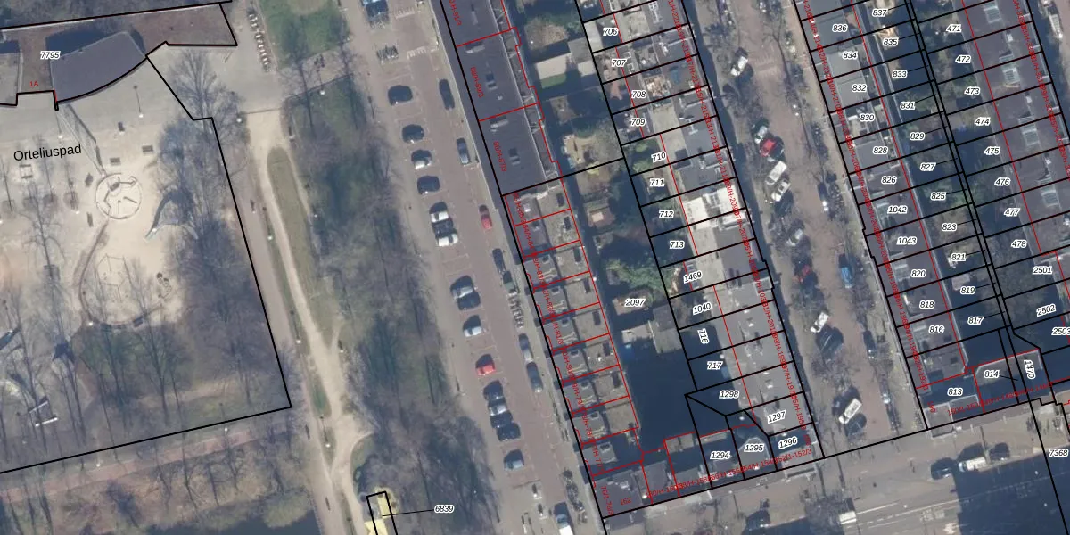Het perceel waarop Orteliuskade 83-3 staat heeft een oppervlakte van 1480 m². Dit is een zeer groot perceel. De perceeloppervlakte wordt geregistreerd door het Kadaster. Gedetailleerde informatie over de maten van dit perceel kunt u vinden in het rapport Kadastrale kaart met maatvoering van Orteliuskade 83-3.