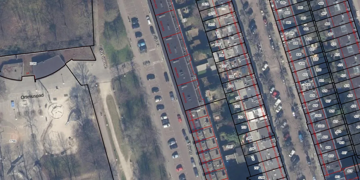 Het perceel waarop Orteliuskade 87-H staat heeft een oppervlakte van 5217 m². Dit is een zeer groot perceel. De perceeloppervlakte wordt geregistreerd door het Kadaster. Gedetailleerde informatie over de maten van dit perceel kunt u vinden in het rapport Kadastrale kaart met maatvoering van Orteliuskade 87-H.