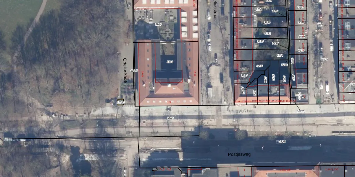 Het perceel waarop Orteliusstraat 1-F staat heeft een oppervlakte van 1291 m². Dit is een zeer groot perceel. De perceeloppervlakte wordt geregistreerd door het Kadaster. Gedetailleerde informatie over de maten van dit perceel kunt u vinden in het rapport Kadastrale kaart met maatvoering van Orteliusstraat 1-F.