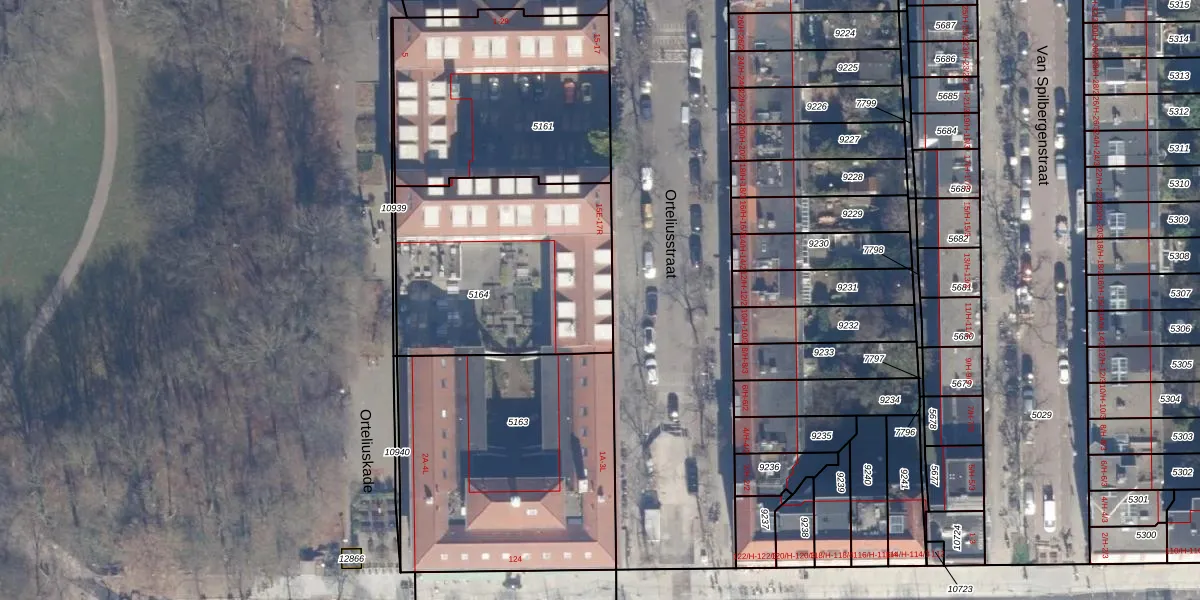 Het perceel waarop Orteliusstraat 15-B staat heeft een oppervlakte van 1040 m². Dit is een zeer groot perceel. De perceeloppervlakte wordt geregistreerd door het Kadaster. Gedetailleerde informatie over de maten van dit perceel kunt u vinden in het rapport Kadastrale kaart met maatvoering van Orteliusstraat 15-B.
