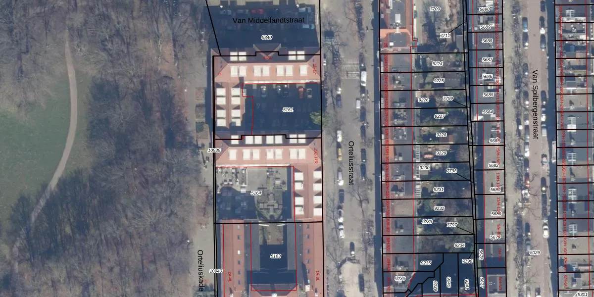 Het perceel waarop Orteliusstraat 17-E staat heeft een oppervlakte van 1040 m². Dit is een zeer groot perceel. De perceeloppervlakte wordt geregistreerd door het Kadaster. Gedetailleerde informatie over de maten van dit perceel kunt u vinden in het rapport Kadastrale kaart met maatvoering van Orteliusstraat 17-E.
