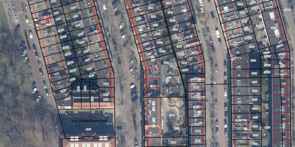 Het perceel waarop Orteliusstraat 34-H staat heeft een oppervlakte van 702 m². Dit is een groot perceel. De perceeloppervlakte wordt geregistreerd door het Kadaster. Gedetailleerde informatie over de maten van dit perceel kunt u vinden in het rapport Kadastrale kaart met maatvoering van Orteliusstraat 34-H.