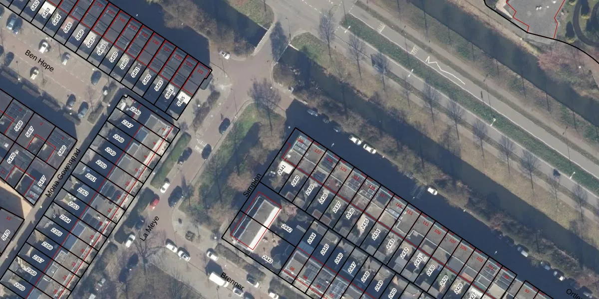 Gebruik de zoekbalk of klik op een perceel voor informatie over de adressen binnen dit perceel.