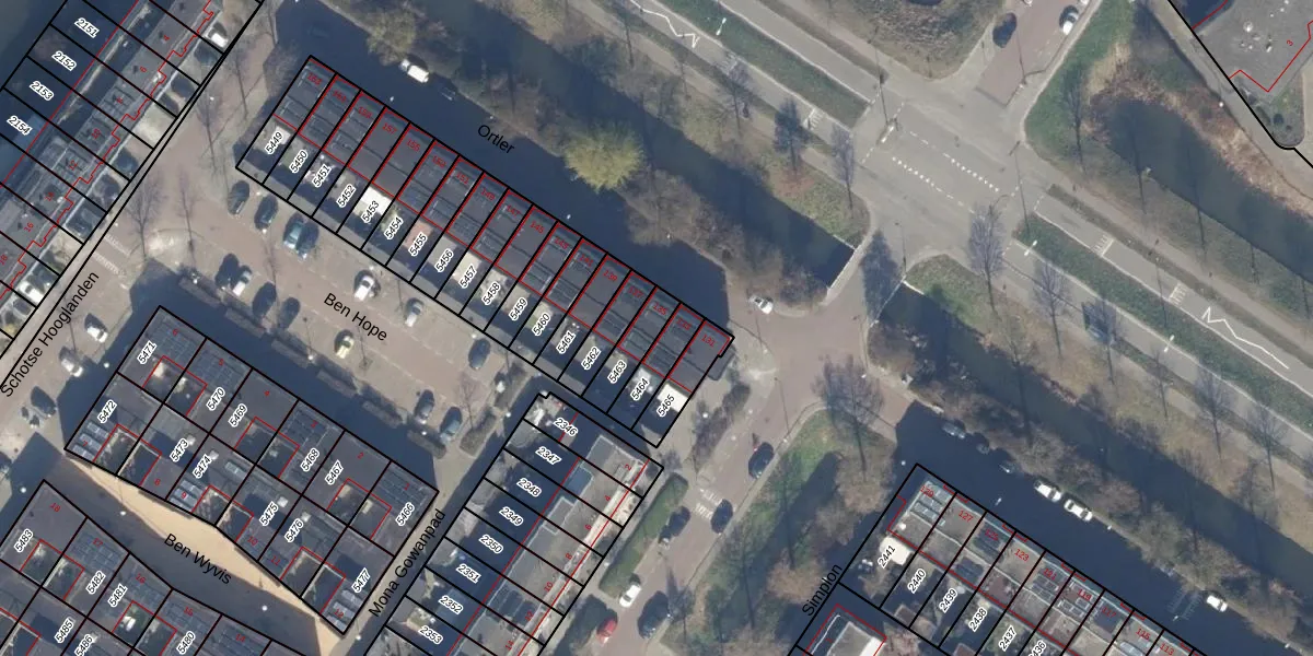 Gebruik de zoekbalk of klik op een perceel voor informatie over de adressen binnen dit perceel.