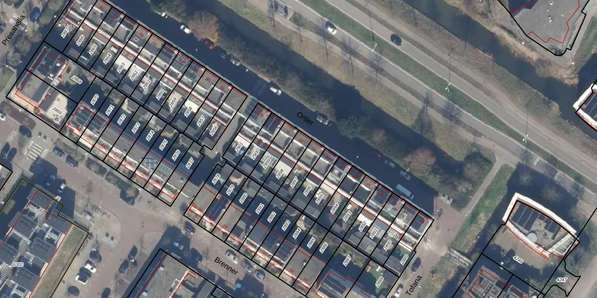 Het perceel waarop Ortler 33 staat heeft een oppervlakte van 122 m². Dit is een middelgroot perceel. De perceeloppervlakte wordt geregistreerd door het Kadaster. Gedetailleerde informatie over de maten van dit perceel kunt u vinden in het rapport Kadastrale kaart met maatvoering van Ortler 33.