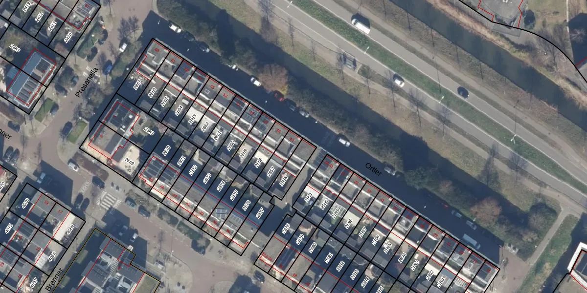Het perceel waarop Ortler 43 staat heeft een oppervlakte van 121 m². Dit is een middelgroot perceel. De perceeloppervlakte wordt geregistreerd door het Kadaster. Gedetailleerde informatie over de maten van dit perceel kunt u vinden in het rapport Kadastrale kaart met maatvoering van Ortler 43.