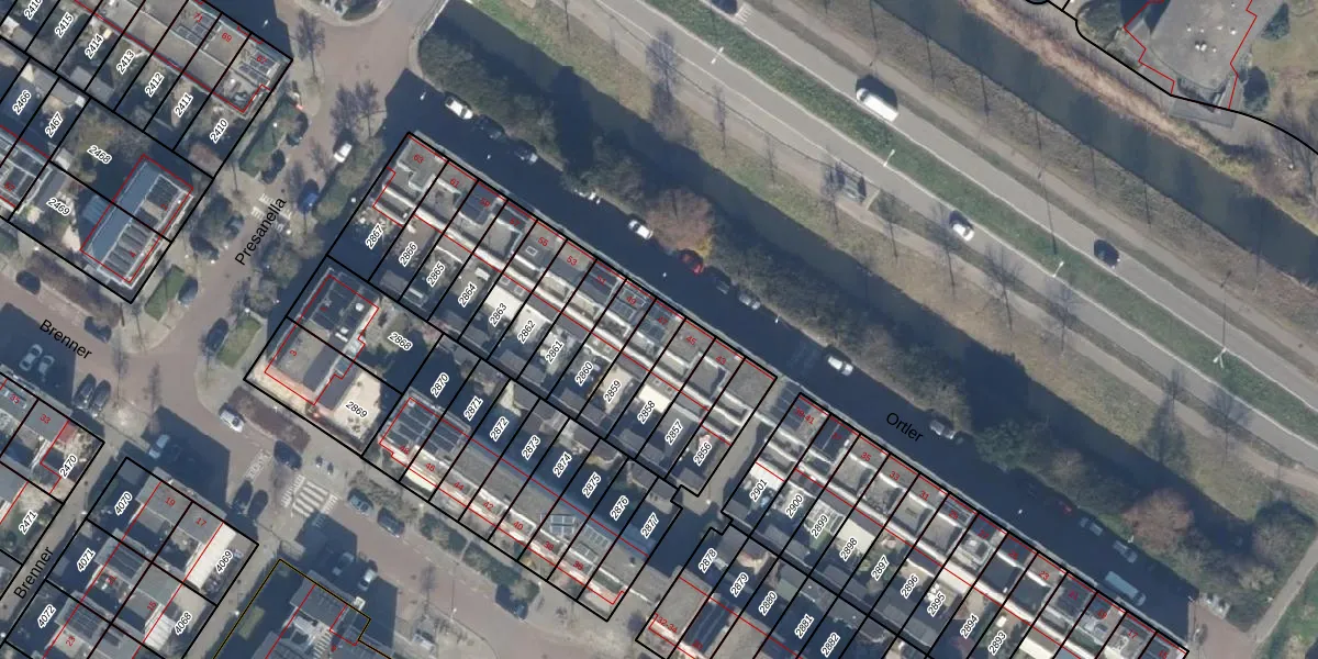 Gebruik de zoekbalk of klik op een perceel voor informatie over de adressen binnen dit perceel.