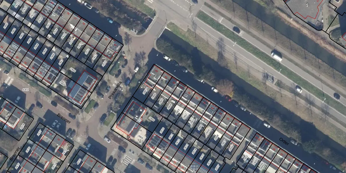 Gebruik de zoekbalk of klik op een perceel voor informatie over de adressen binnen dit perceel.