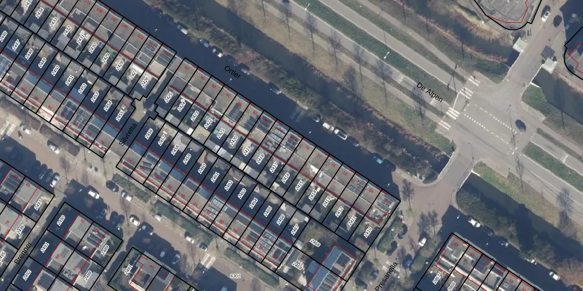 Het perceel waarop Ortler 81 staat heeft een oppervlakte van 119 m². Dit is een middelgroot perceel. De perceeloppervlakte wordt geregistreerd door het Kadaster. Gedetailleerde informatie over de maten van dit perceel kunt u vinden in het rapport Kadastrale kaart met maatvoering van Ortler 81.