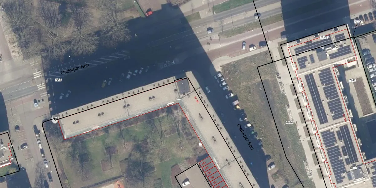 Het perceel waarop Osdorper Ban 239 staat heeft een oppervlakte van 7681 m². Dit is een zeer groot perceel. De perceeloppervlakte wordt geregistreerd door het Kadaster. Gedetailleerde informatie over de maten van dit perceel kunt u vinden in het rapport Kadastrale kaart met maatvoering van Osdorper Ban 239.
