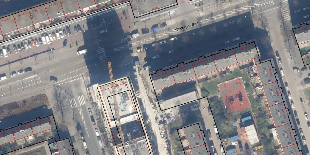 Het perceel waarop Osdorper Ban 439-H staat heeft een oppervlakte van 6021 m². Dit is een zeer groot perceel. De perceeloppervlakte wordt geregistreerd door het Kadaster. Gedetailleerde informatie over de maten van dit perceel kunt u vinden in het rapport Kadastrale kaart met maatvoering van Osdorper Ban 439-H.