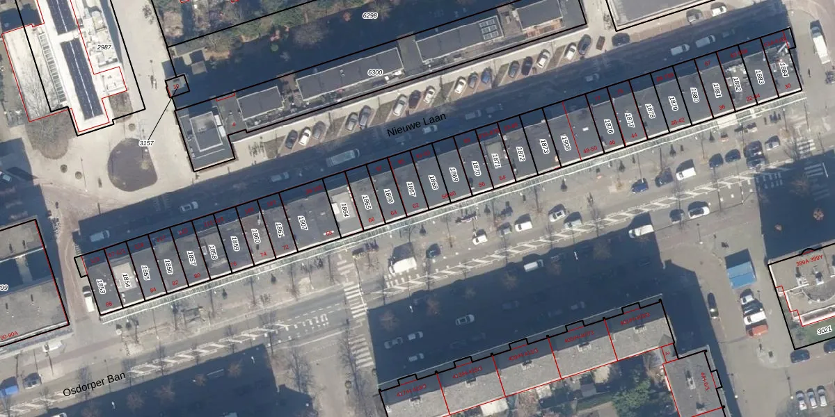 Het perceel waarop Osdorper Ban 62 staat heeft een oppervlakte van 83 m². Dit is een klein perceel. De perceeloppervlakte wordt geregistreerd door het Kadaster. Gedetailleerde informatie over de maten van dit perceel kunt u vinden in het rapport Kadastrale kaart met maatvoering van Osdorper Ban 62.