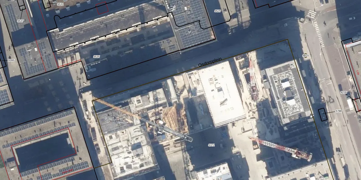 Het perceel waarop Osdorpplein 1002-B staat heeft een oppervlakte van 1,0 ha. Dit is een zeer groot perceel. De perceeloppervlakte wordt geregistreerd door het Kadaster. Gedetailleerde informatie over de maten van dit perceel kunt u vinden in het rapport Kadastrale kaart met maatvoering van Osdorpplein 1002-B.